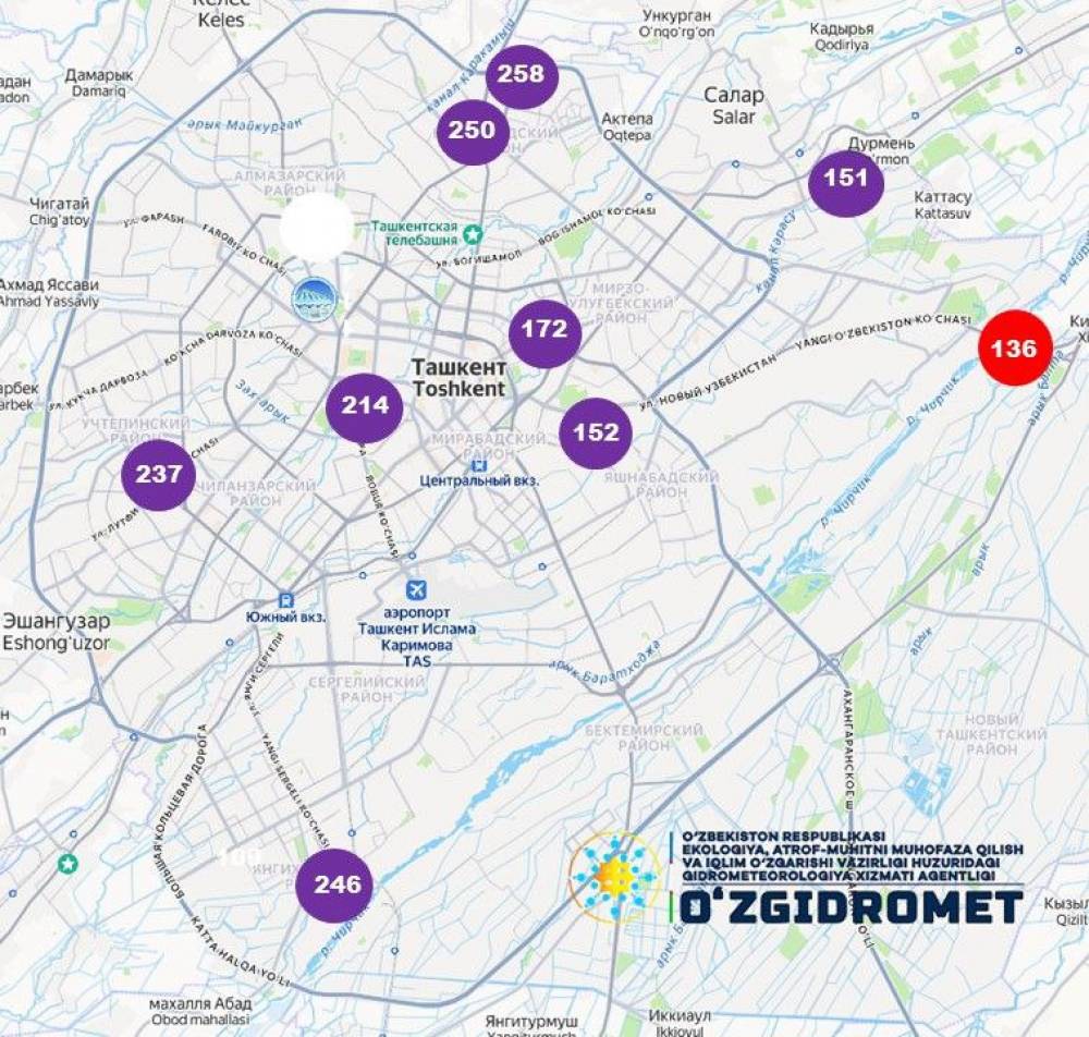 ПМ2,5 майда дисперс заррачалар миқдори – 202 мкг/м³, бу эса рухсат этилган меъёр (60 мкг/м³)дан 3,4 баравар юқори.