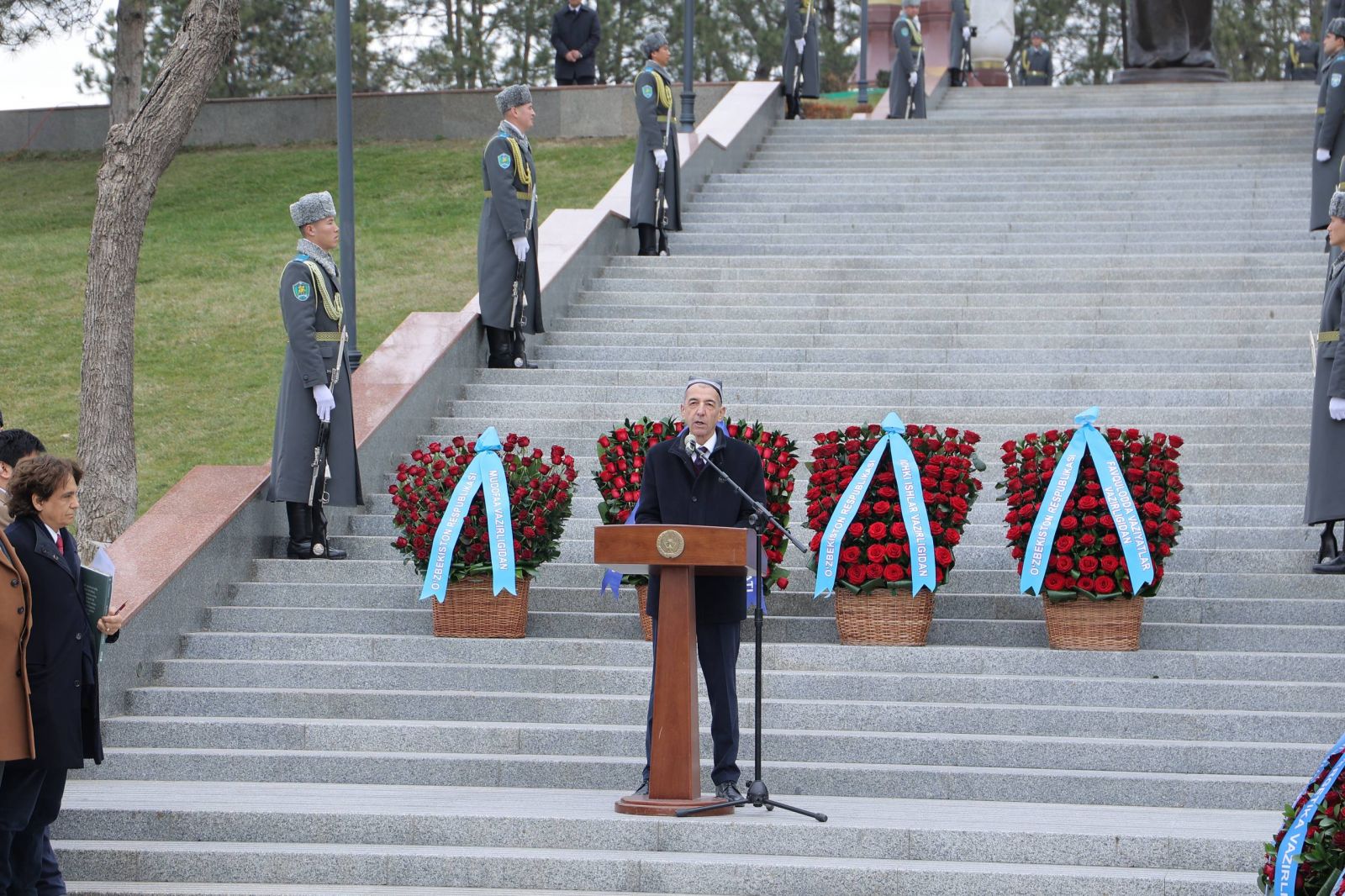 Шундан сўнг давлат ва жамоат арбоблари, шоир ва ёзувчилар, адабиётшунослар, талаба ва ўқувчилар, ижодий ташкилотлар ва кенг жамоатчилик вакиллари Алишер Навоий ҳайкали пойига гул қўйишга таклиф этилди.